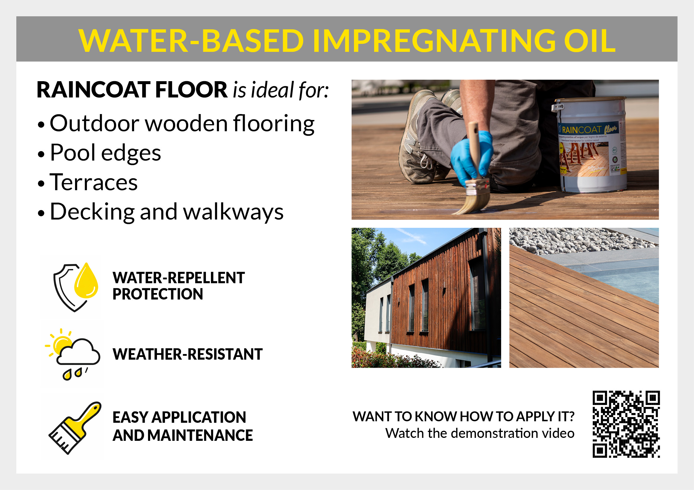 With RAINCOAT FLOOR, you can effectively protect and enhance outdoor wood, preserving its natural appearance over time.